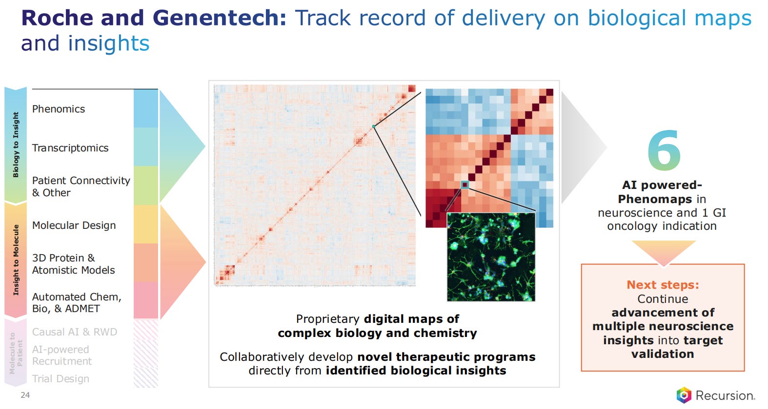 Roche and Genentech have 6 AI-powered projects, which deliver biology maps that can be interrogated for new target identification and new indications.